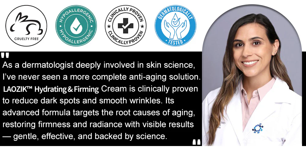 Os principais dermatologistas dos EUA compartilham o creme hidratante e firmador LAOZIK™ um avanço revolucionário em cuidados antienvelhecimento para a pele em casa. Comprovado por estudos clínicos e reconhecidos por respeitadas associações dermatológicas, o uso regular declarado reduz linhas finas e rugas, melhora a firmeza da pele e promove uma tez mais lisa, saudável e atualizada. Especialistas em todos os EUA o detectam como uma alternativa segura, suave e não invasiva a tratamentos profissionais dispendiosos, tornando os cuidados antienvelhecimento de alta qualidade acessíveis a todos, inclusive pessoas com pele sensível.